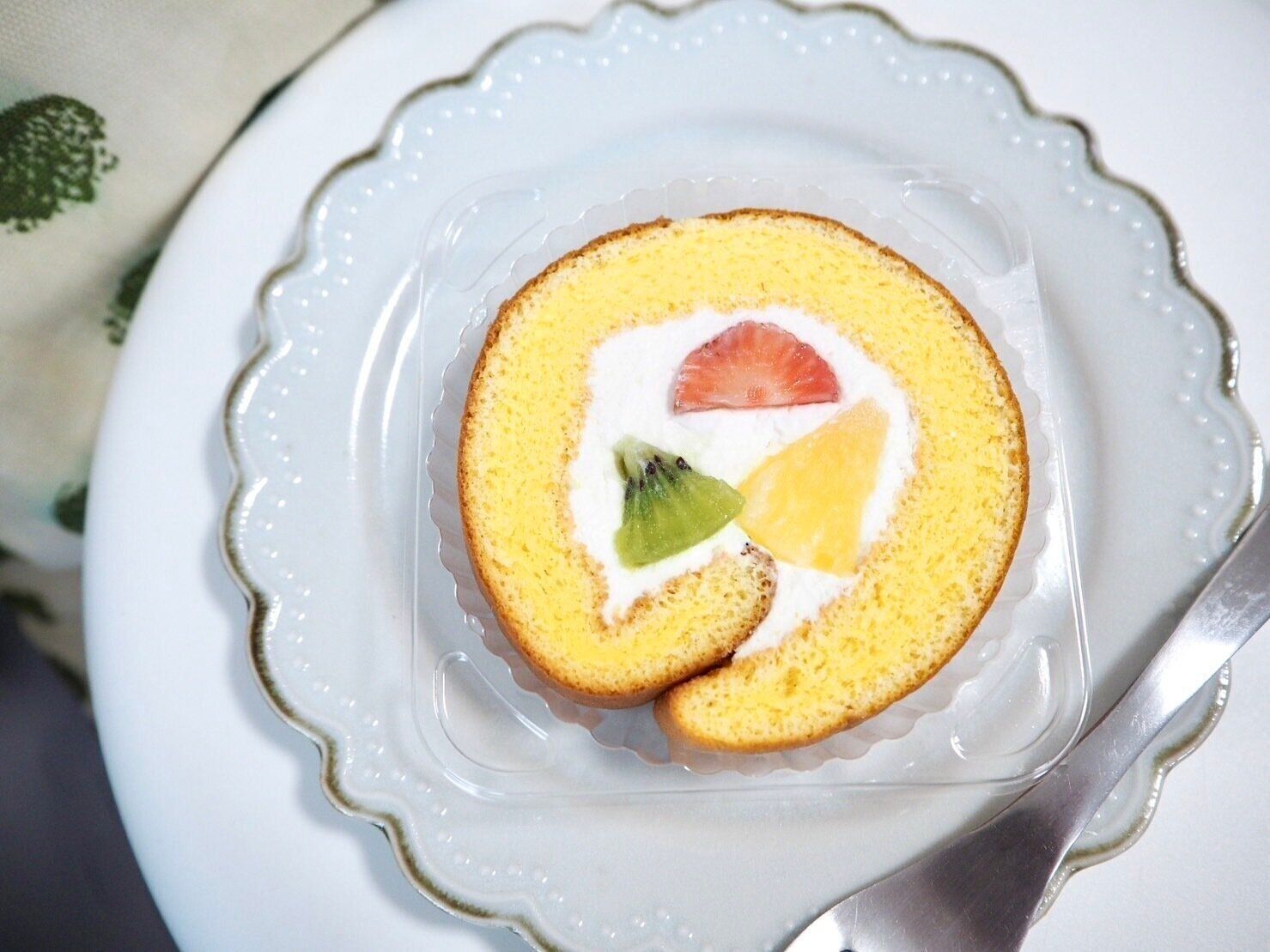 ロールケーキはプラケースに入っていますが、お皿に移動させるのに一苦労するほど、ふわふわと柔らかく、卵の優しい香りがします。