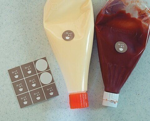 インスタでは「これマジいいよ!」とママ友に話す感覚で発信!(上)冷蔵庫はどこに何があるかパッとわかればざっくり収納でOK。(下)私が考案した「ストックあり」シール。「ストックがあるので買い足さなくてよし」と一目瞭然。