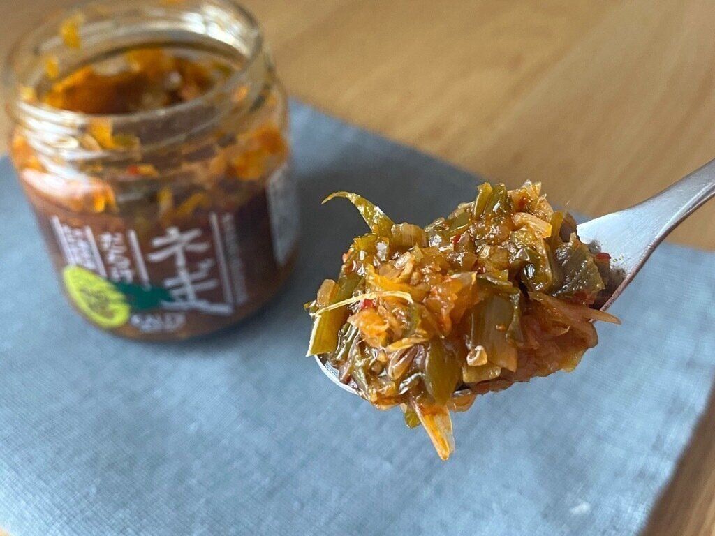 見るからにたっぷりとネギが入っているので口の中がネギの味でいっぱいになると思いきや、ネギ独特の臭みは控えめで生姜の香りがきいています。生姜の香りがしみでた油とたっぷりのネギは噛むたびにふわっといい香りがひろがり、ほどよいピリ辛さがご飯に合う味に仕上げてくれています。醸造酢が入っていることでクドさがなく、さっぱりと食べられるところもいいですね。