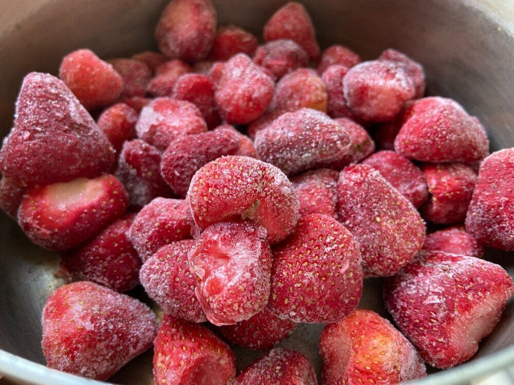 業務スーパーでは冷凍野菜や冷凍フルーツのコーナーの品ぞろえも大充実で、マニアの筆者もよくリピート購入している冷凍いちごは、ジャムやスムージー作りにもぴったりのコスパもよくて便利な商品。