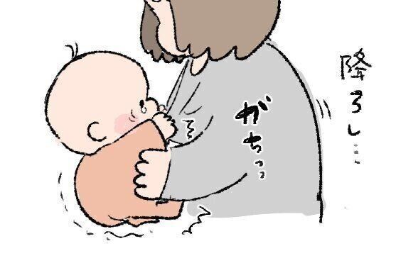 そのため、サチコさんがネネちゃんをおろそうとしても「がちっっ」とママの服をつかんではなしません。