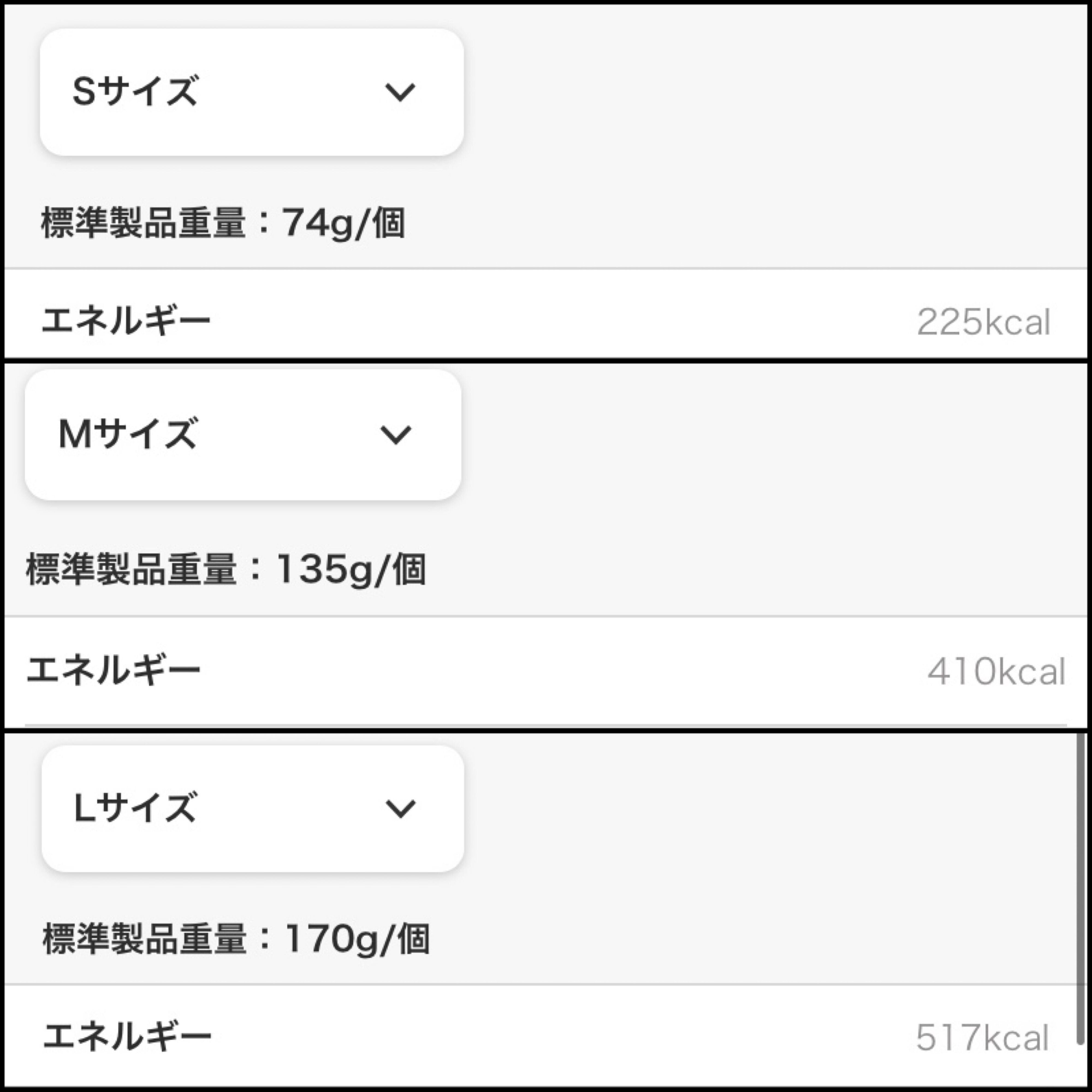 マクドナルドのハンバーガー1個の標準製品重量が104gなので、Mサイズ・Lサイズはハンバーガーよりもボリュームがあります。