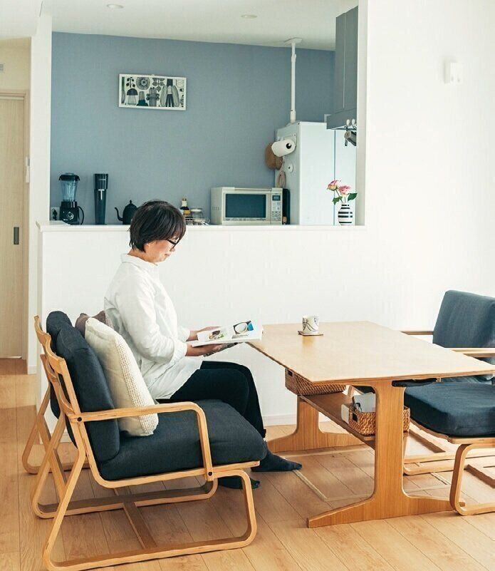 物が少なくて整った家に住むと、心穏やかに過ごせ、夫への信頼度もアップ。「年齢とともに1人で家事を頑張りすぎるのをやめ、夫に甘えて家事を頼っています」。