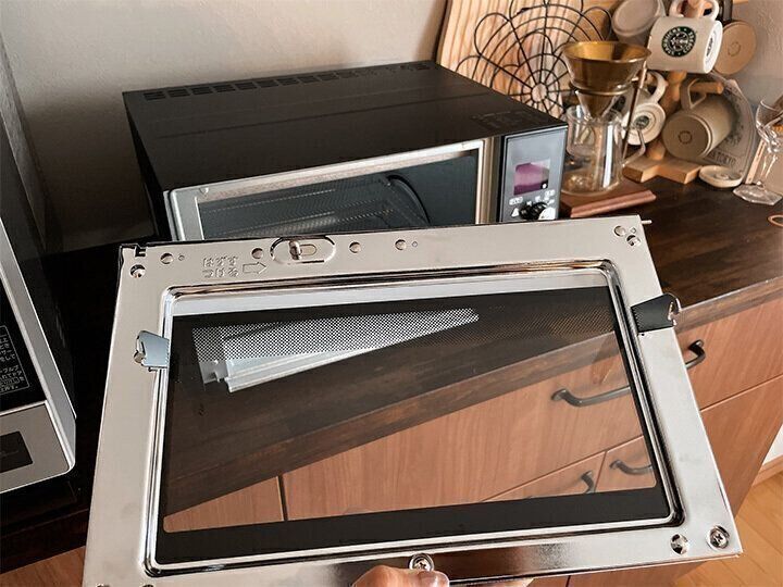 扉は丸ごと外れるので、トースターの庫内にもしっかり手が届きますね。調理後の気になる汚れを毎回お手入れできる手軽さは魅力的です! これだけ簡単にお手入れできるなら、せっかくおいしいトーストを焼くのに、毎回汚れが気になってがっかりする…なんていう機会も減りそうです。