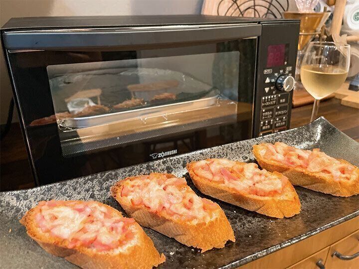 夕方の忙しいときにも重宝する象印のトースター(ET-GP30)。手早くおつまみ風トーストを作ったのはサンキュ!公式インスタグラマーさくのんさん(@sakunon_s_life)。