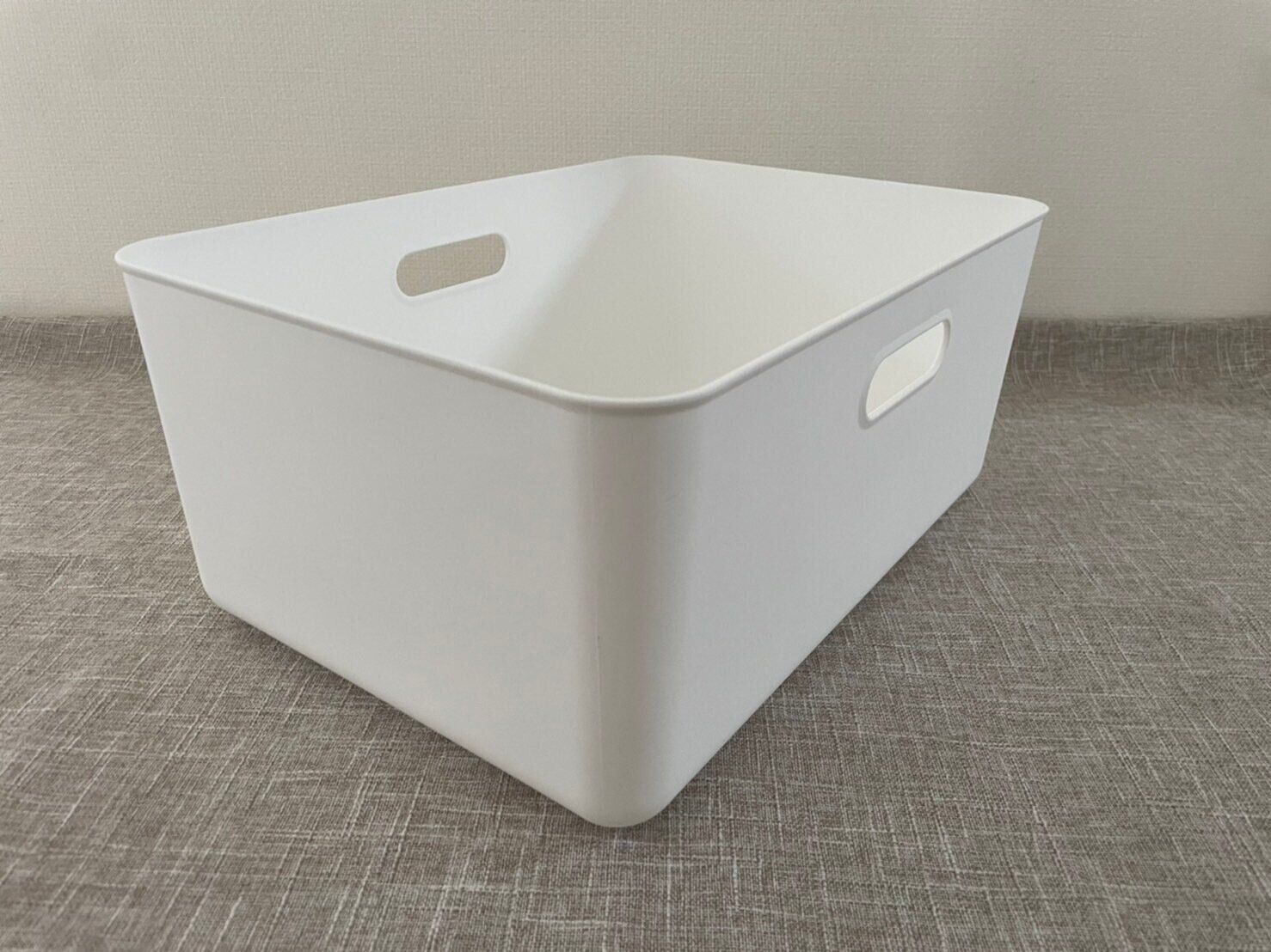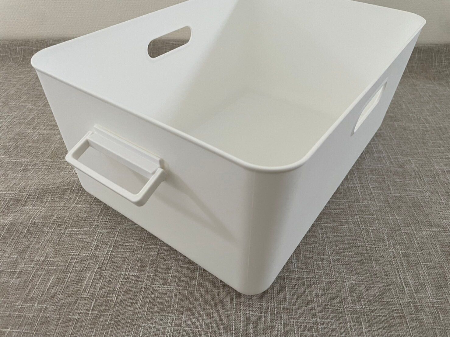 持ち手が四方にない収納ボックスをお持ちのかたもいますよね。収納する空間の関係で、どうしても持ち手がない面が手前向きになることもでてきてしまいます。