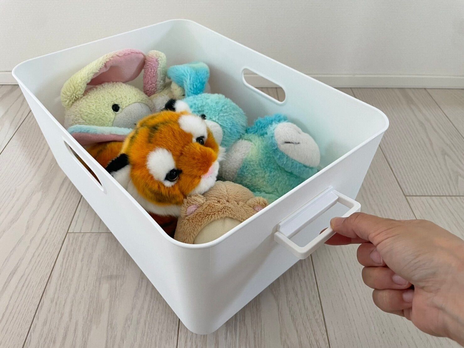 そうすることで、ただ移動するだけではなく、持ち手がある引っ張りタイプのボックスの完成です。子どものおもちゃ入れや、パントリーの最下段の食品入れなどにおすすめです。移動が便利になる収納ボックスのアレンジも、ぜひチャレンジしてみてください。