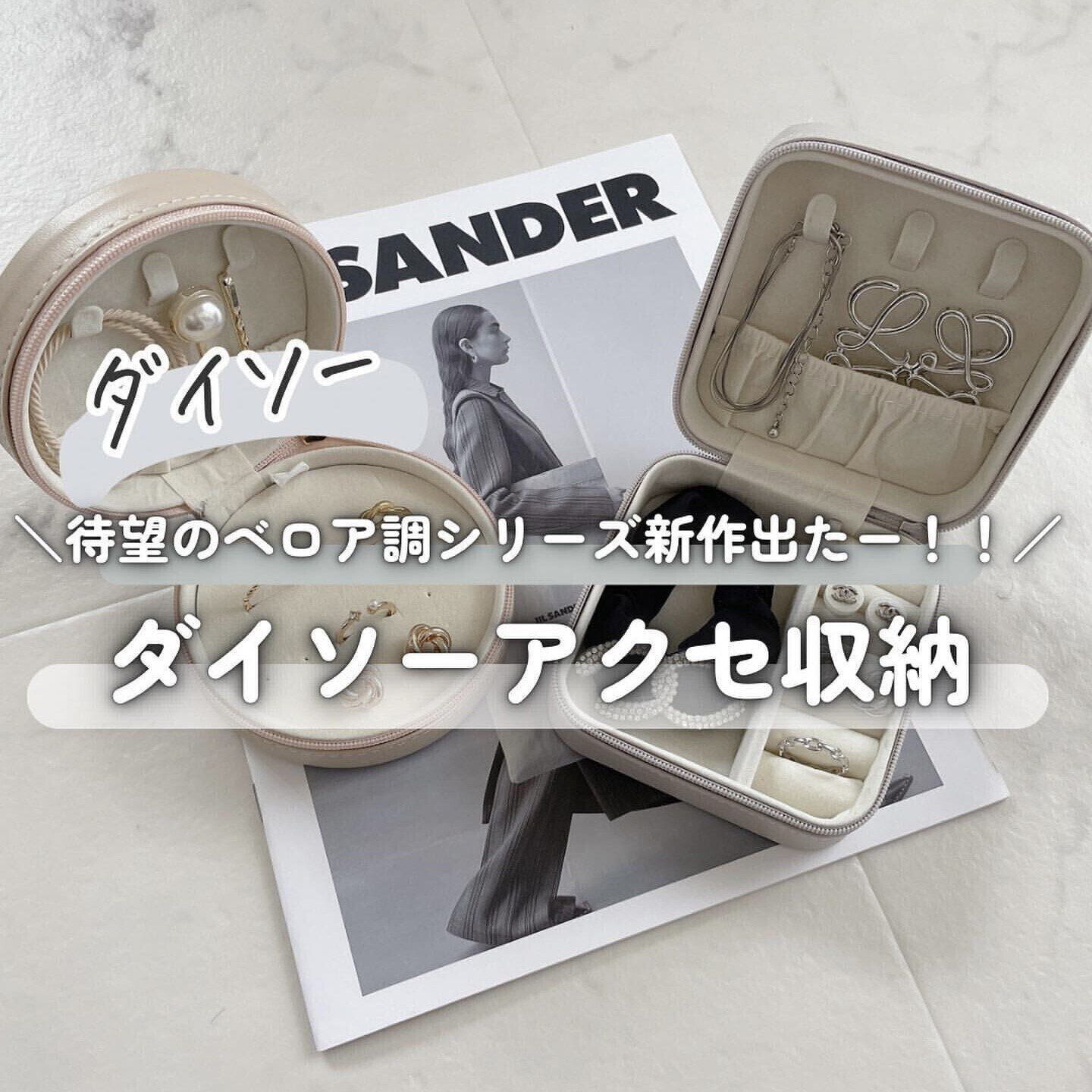 コンパクトだから外出時や旅行時にアクセを持ち運びやすい!と話題の新作、「ジュエリー収納ボックス」。外側はレザー調、内側はベロア調になった収納ボックスは高級感があり、330円に見えない高見えアイテムです。