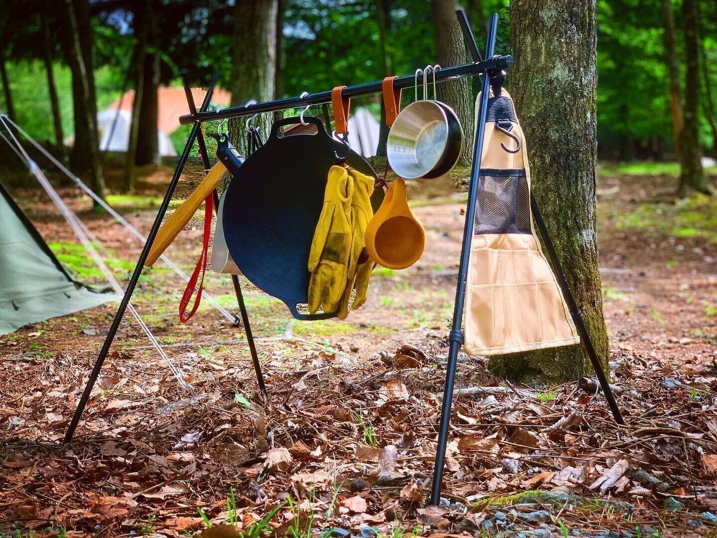 キャンプ用品や小物を整理できる「ハンギングラック(収納ポーチ付)」