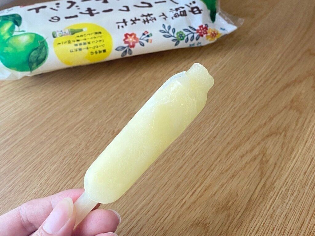 こちらも夏の新商品「沖縄で採れたシークヮーサーのシャーベット」。カルディオリジナル和ブランドもへじの「沖縄県産シークヮーサー果汁100%」という商品を使用してつくったシャーベットです。