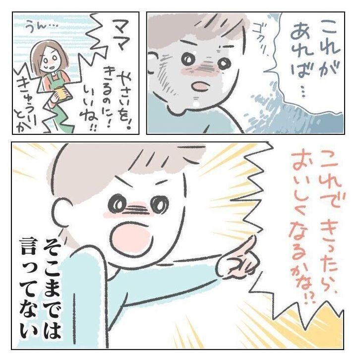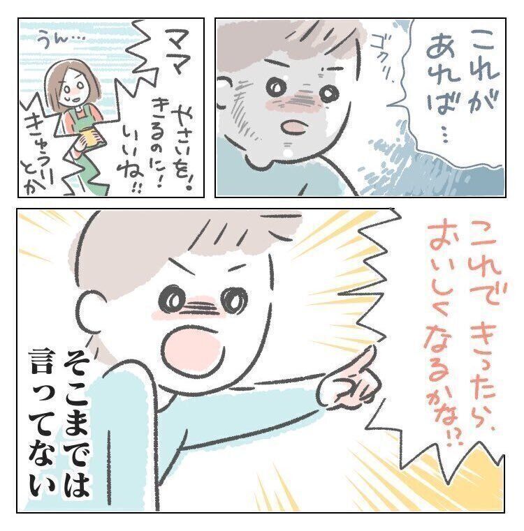 あーくんは「これがあれば……」と息をのみ、「やさいを!きるのに!いいね!!」「これできったら、おいしくなるかな!?」と、大興奮しているようです。