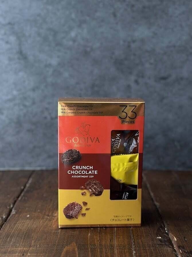 ミルクチョコレート11粒・ダーク11粒・ミルクキャラメル11粒と、3種類のフレーバーが楽しめ、各11個の合計33個入りの商品です。