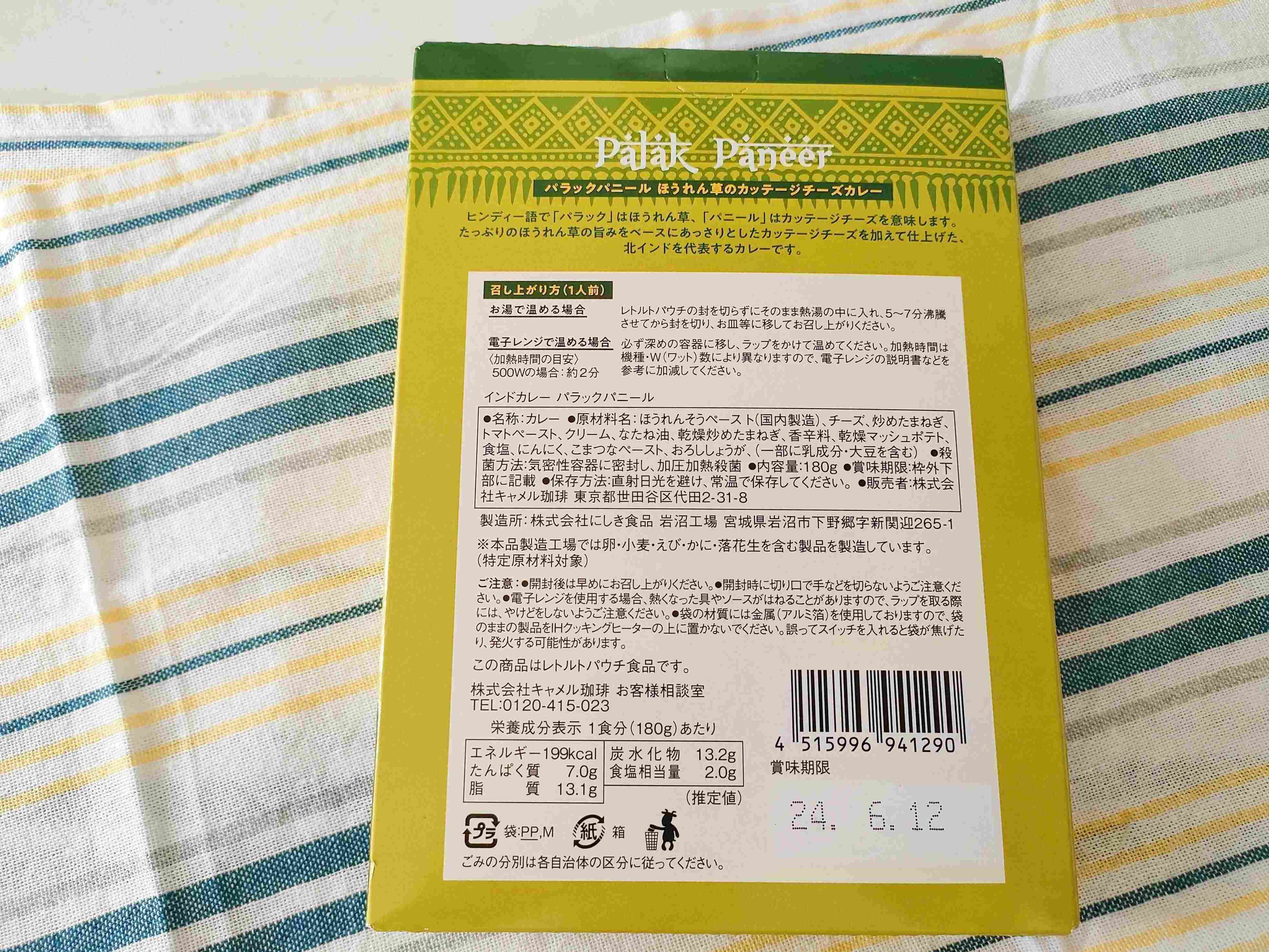 商品名:インドカレー パラックパニール