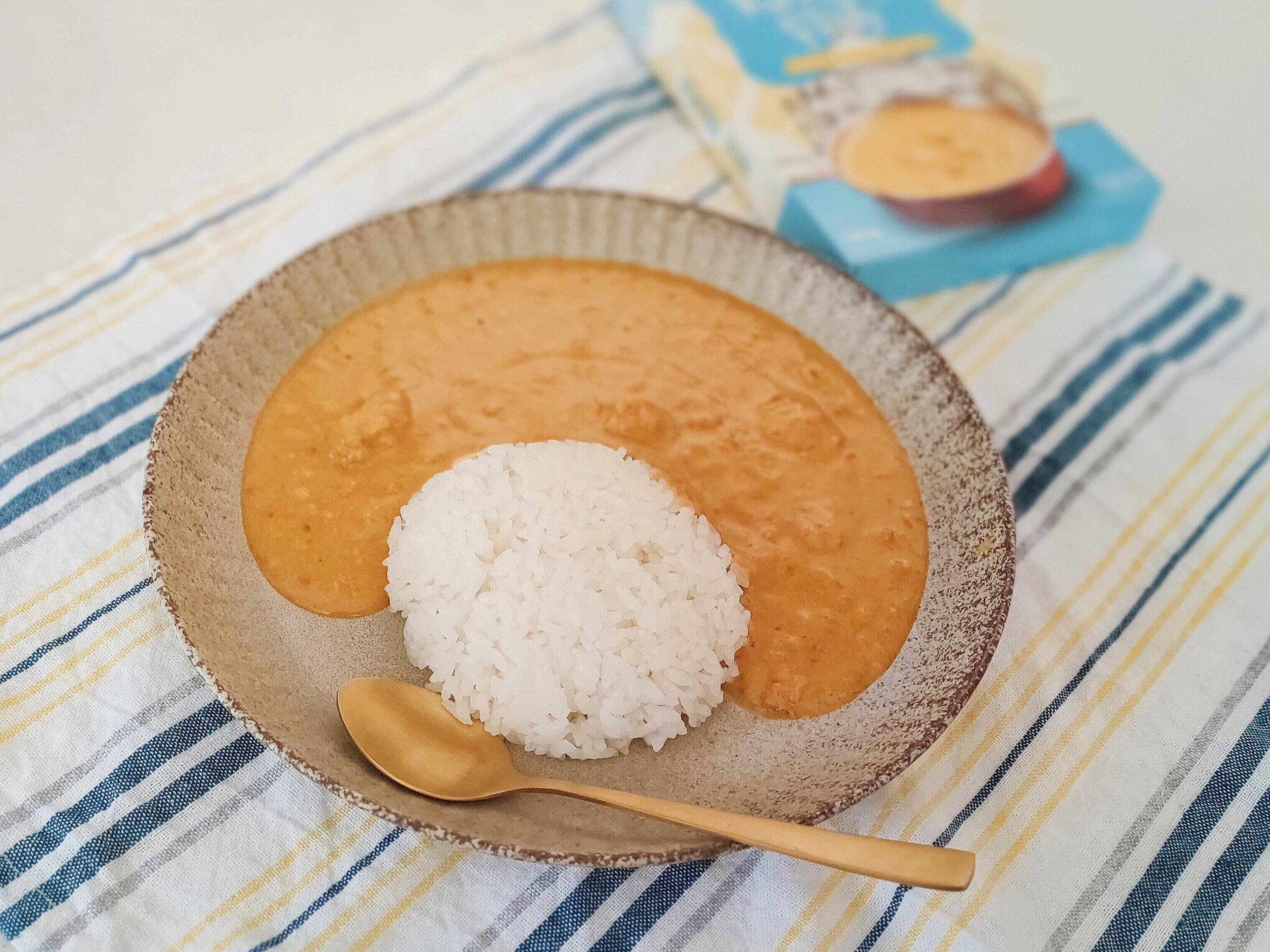 ココナッツミルクでまろやかな甘味が強いかと思いきや、香辛料がしっかりと効いていて、香り高いカレーになっています。まかじきがごろごろっとはいっているので、具材も感じられるところが高ポイント。