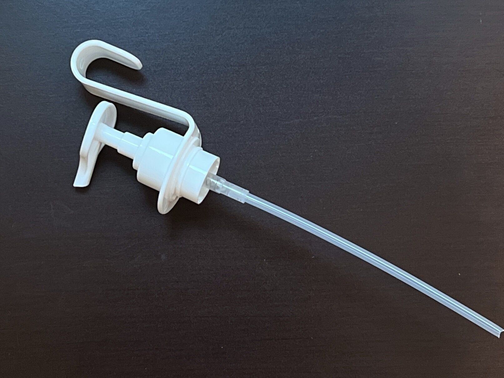 またこのポンプには指がかかるフックパーツがついているので、浮いた状態でも片手プッシュできるのがありがたい!目が離せない小さなお子さんがいるご家庭にもおススメです。