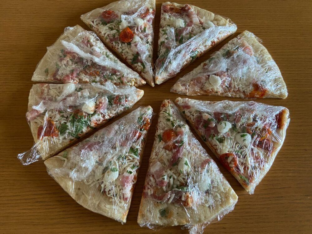 ラップで一枚一枚包んでチャック付きの保存袋に入れて冷凍保存。食べる時は電子レンジ500Wで50秒~1分ほど加熱してからトースターで焼けば、おいしく食べることができます。