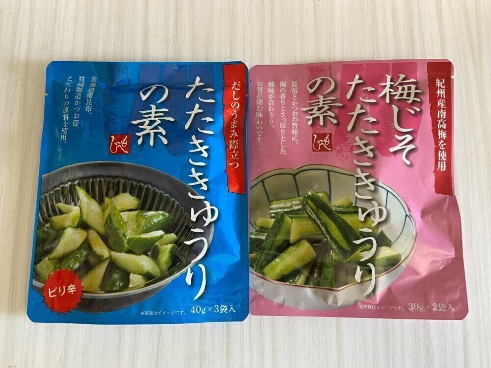 北海道産昆布、枕崎製造かつお節に熟成豆板醤を使用したピリ辛テイストのたたききゅうりの素です。