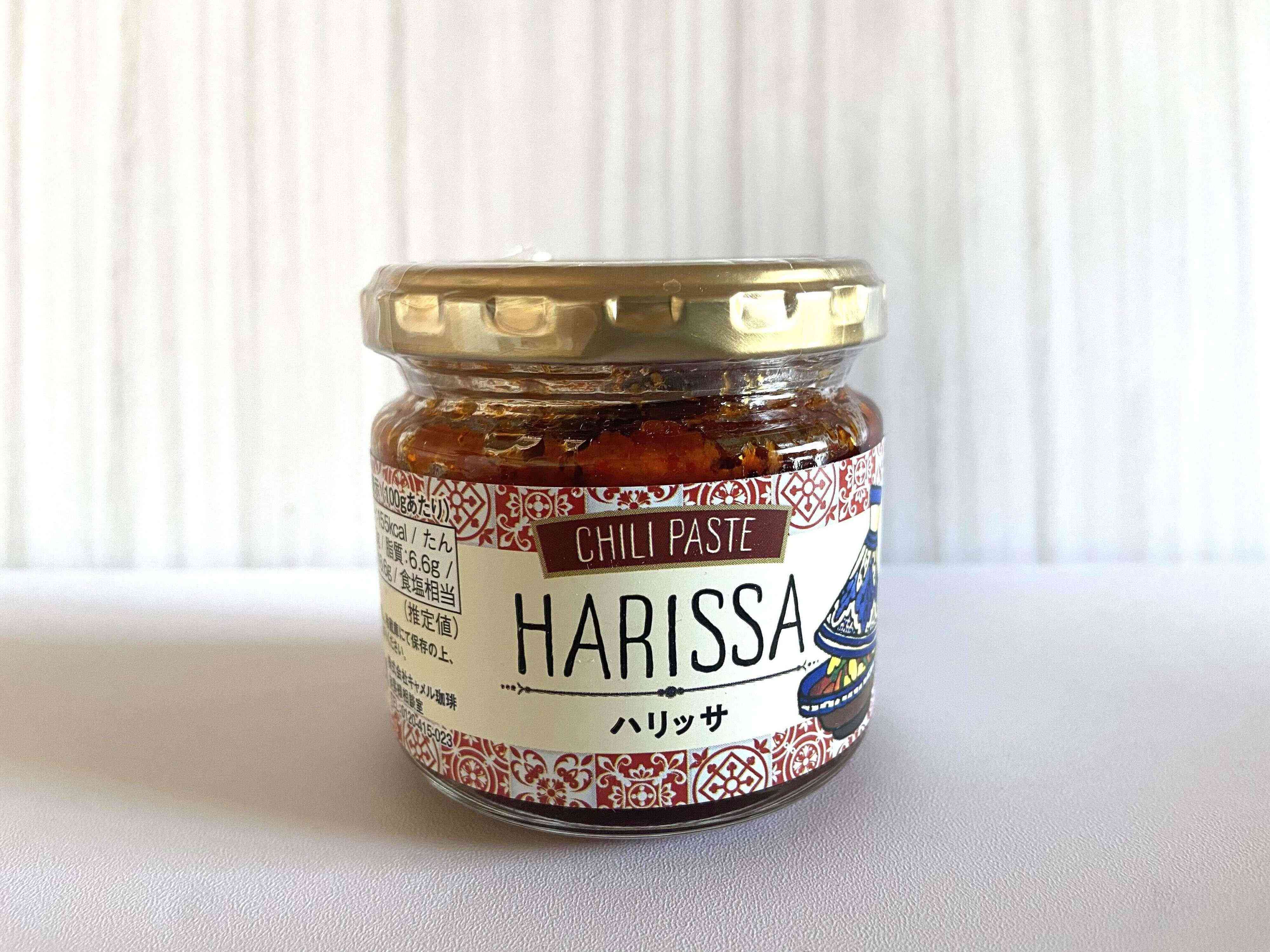 カルディのハリッサは、パプリカ、唐辛子、コリアンダー、クミン、ガーリックを加えて、日本人でも食べやすい味に仕上げてあるとのこと。パンに塗ったり、煮込み料理、肉や魚にトッピングしたり、さまざまな料理に活用できる辛さと旨みたっぷりの調味料です。