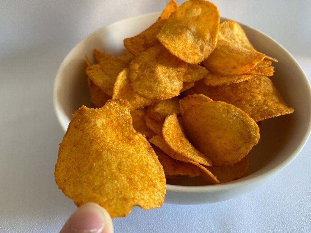 激辛というわけではなく、ほどよい辛みとスパイス感、旨みのパウダーがとってもおいしいポテトチップスで、おやつにもおつまみとしてもぴったり。