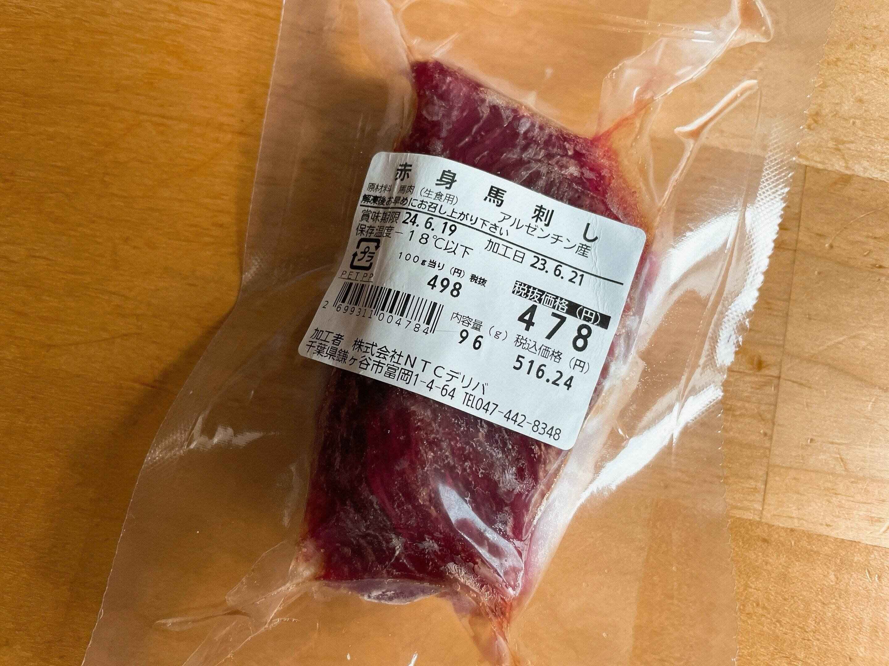 居酒屋のメニューにあると必ず注文するほど子どもたちも大好きな馬刺しが、業務スーパーで手に入ります。