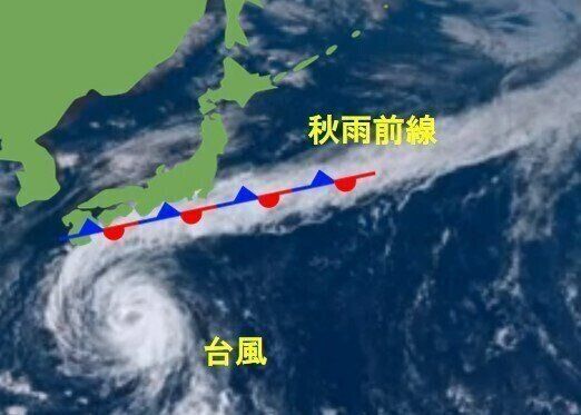 日本列島に秋雨前線がかかっている状態で台風がやって来ると、雨量が記録的に多くなる傾向にあります。