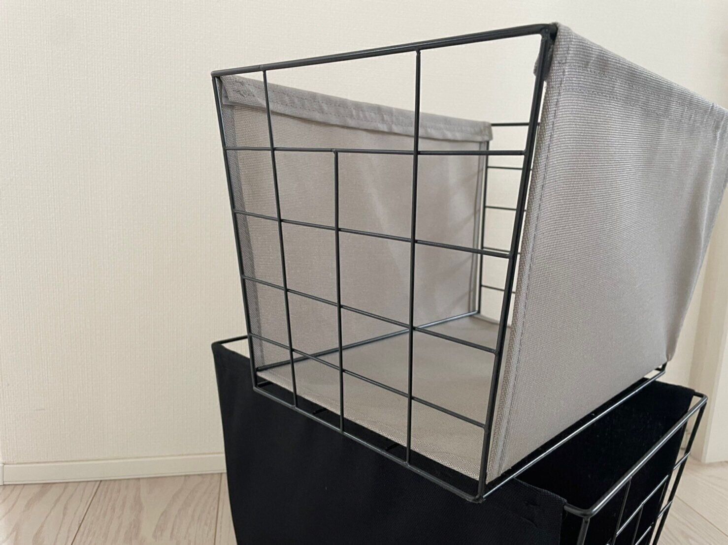 550円で買えるダイソーの「ワイヤー布収納」、おしゃれにかつ実用的に使用できとてもおすすめですよ!