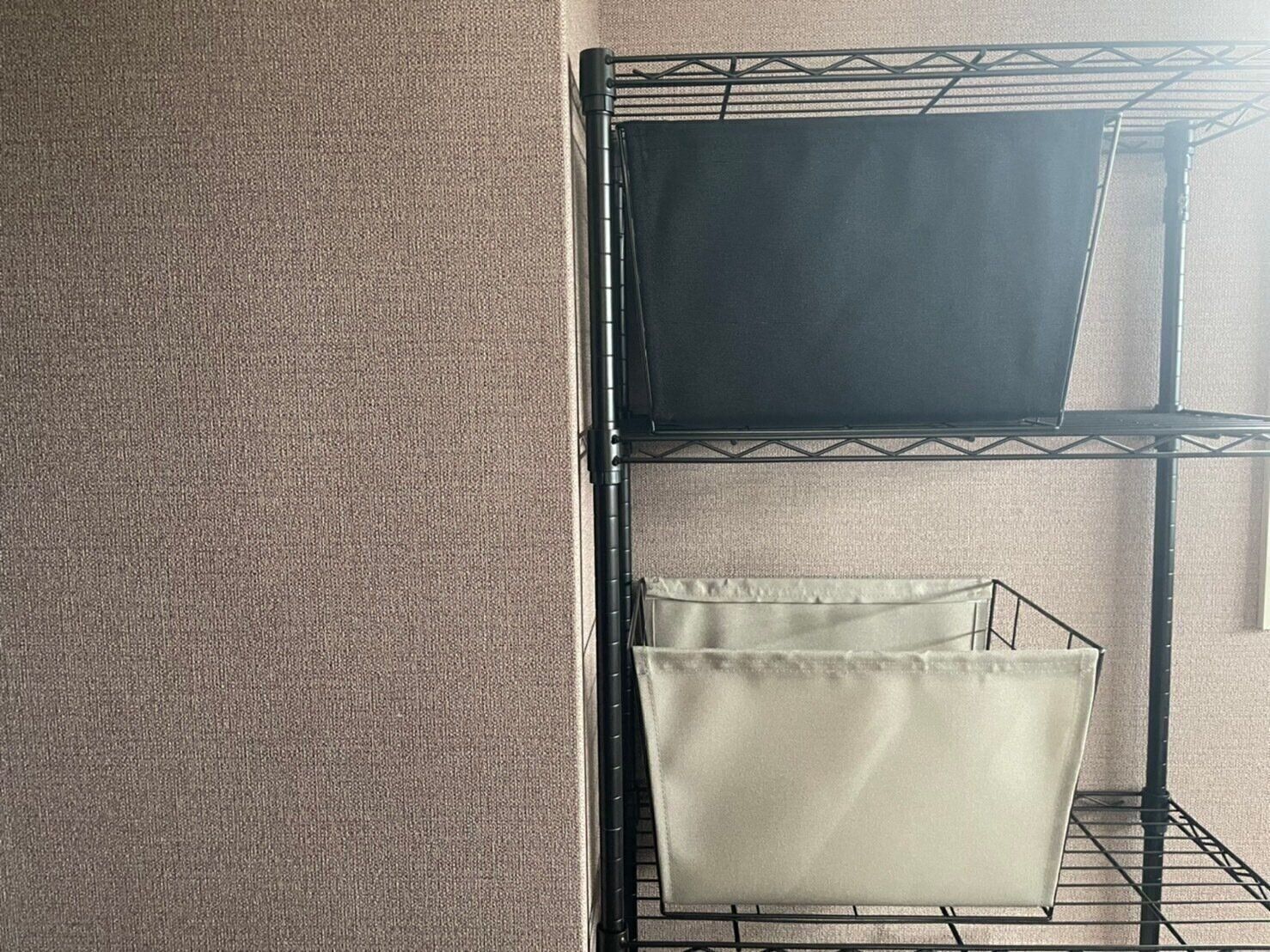 大きめのサイズなので、カバン収納にもぴったり。棚に雑然と置いているカバンもスッキリと収納することができます。ポイントはワイヤー部分を手前にすること。そうすれば中身が見えるので、取り出すときも分かりやすいです。