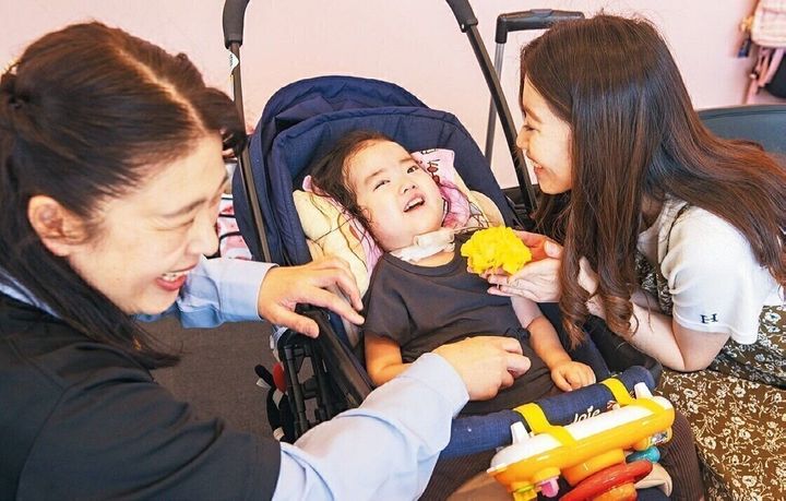 息子が小児がんになって初めて知った、子にも親にもつら過ぎる現実を、少しでも楽にしたい。そう考えた阿部美幸さんは、小児がんの患者と家族を支える「勇者の会」を立ち上げました。阿部さんの活動エリアは北海道。取材の日は旭川に住む茉羽ちゃんと涼風ちゃんとママのために「勇者ようちえん」を開きました。写真右端が阿部美幸さん、右から2番目は阿部さんのママ友で「勇者の会」の事務や幼児教育を担当する西下理恵さん。