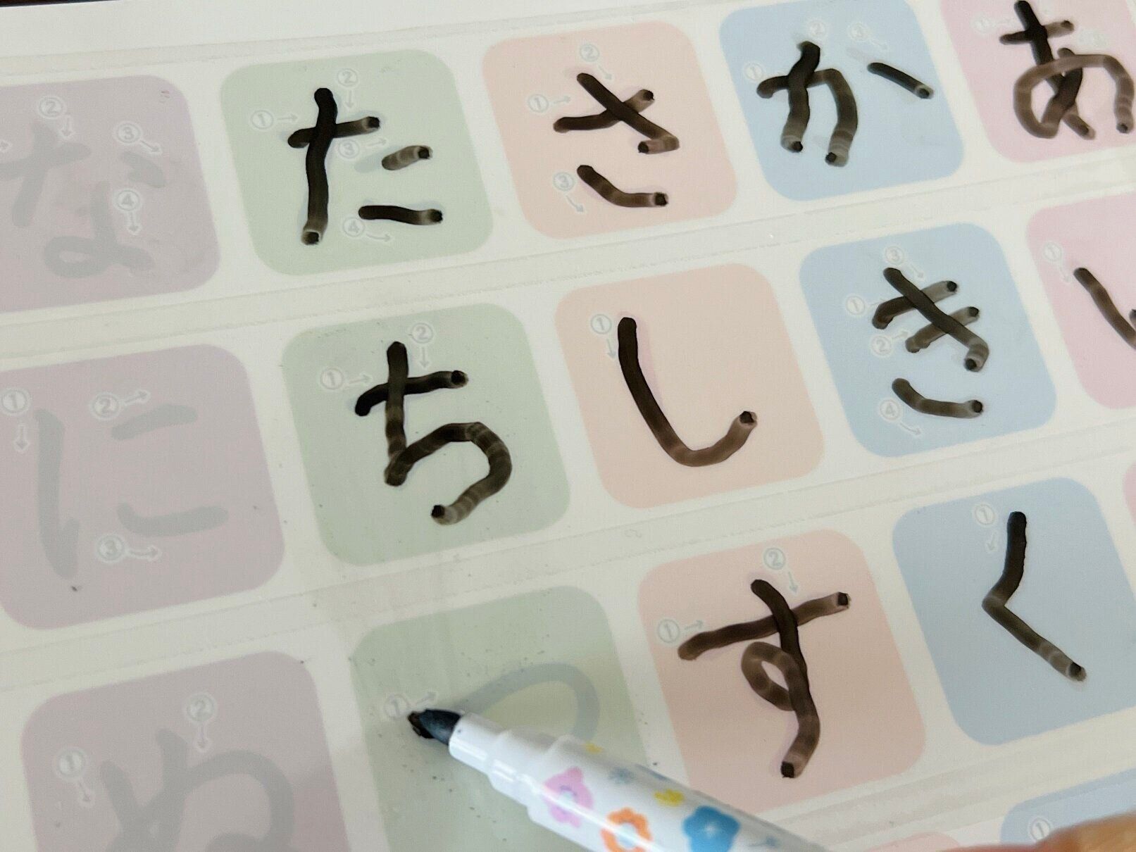 クリアタイプはノートやドリルに貼ると、くり返し使える学習道具に変身です!五十音表に貼れば、ひらがなのなぞり書きが何度もできちゃいます!