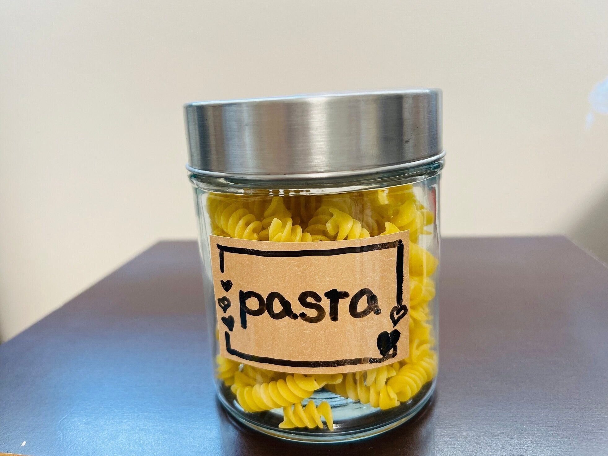 このシートは曲面に貼れるので、びんなどの保存容器のラベリングにとても便利!書いて消せるからシートを貼ったまま書き直しができちゃいます。