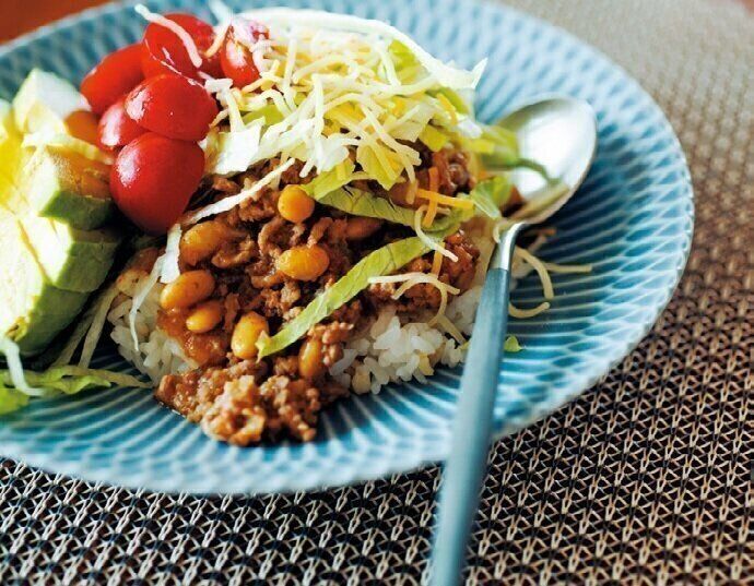 「"〇〇の素"が多いカルディコーヒーファームは、救いの神。今日はタコスの素に大豆の水煮を足して栄養も満点(ドヤッ)」。