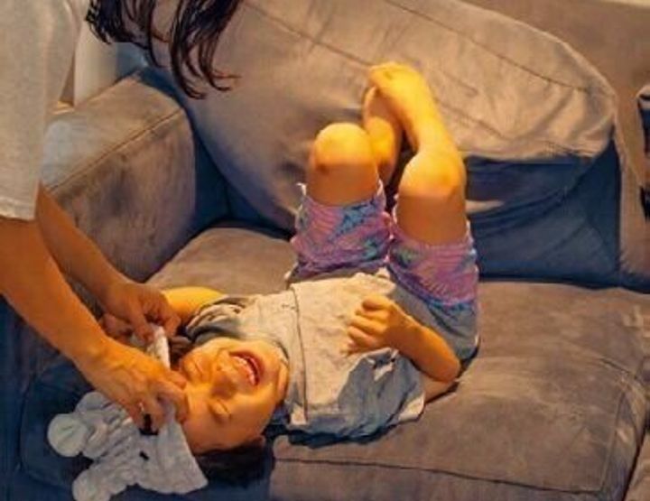 「片づけをパパに頼みつつ、怒涛の育児タスク。お風呂、お着替え、歯みがき、寝かしつけ。早く寝てくれ~」。