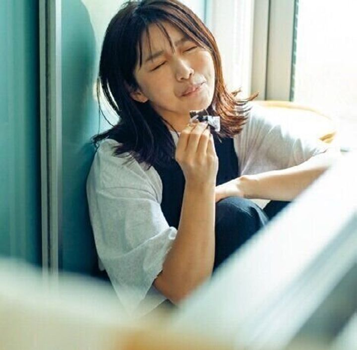 「疲れた体をキッチンマットの冷たさで癒やし、隠しておいたチョコをこっそり食べて体力チャージ。3食作るのって大変」。