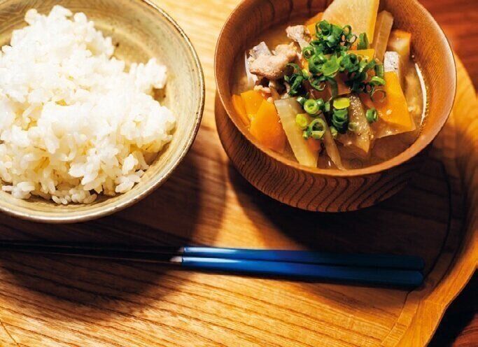 【18:30】疲れた日は"豚汁"と"白米"のみ具だくさんで最強なのです
