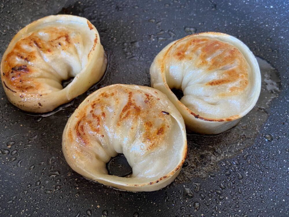 直径は7cmほどもあり、くるっと巻いて成型されている珍しい餃子です。