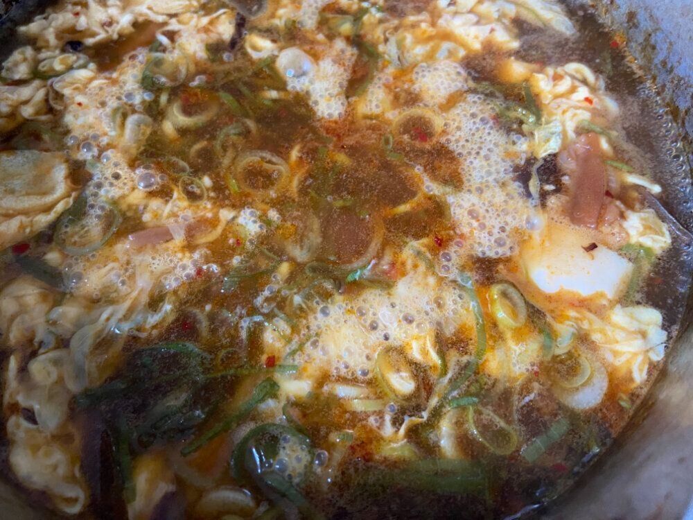 溶き卵とねぎもぜひ入れたい具材。卵をたっぷりと入れるとまろやかになりとってもおいしいです。