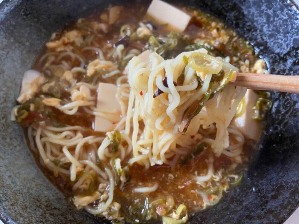 ご飯を入れて雑炊風にして食べても絶品ですが、ゆでた中華麺を合わせて「酸辣湯」ラーメンにするのもおすすめ。