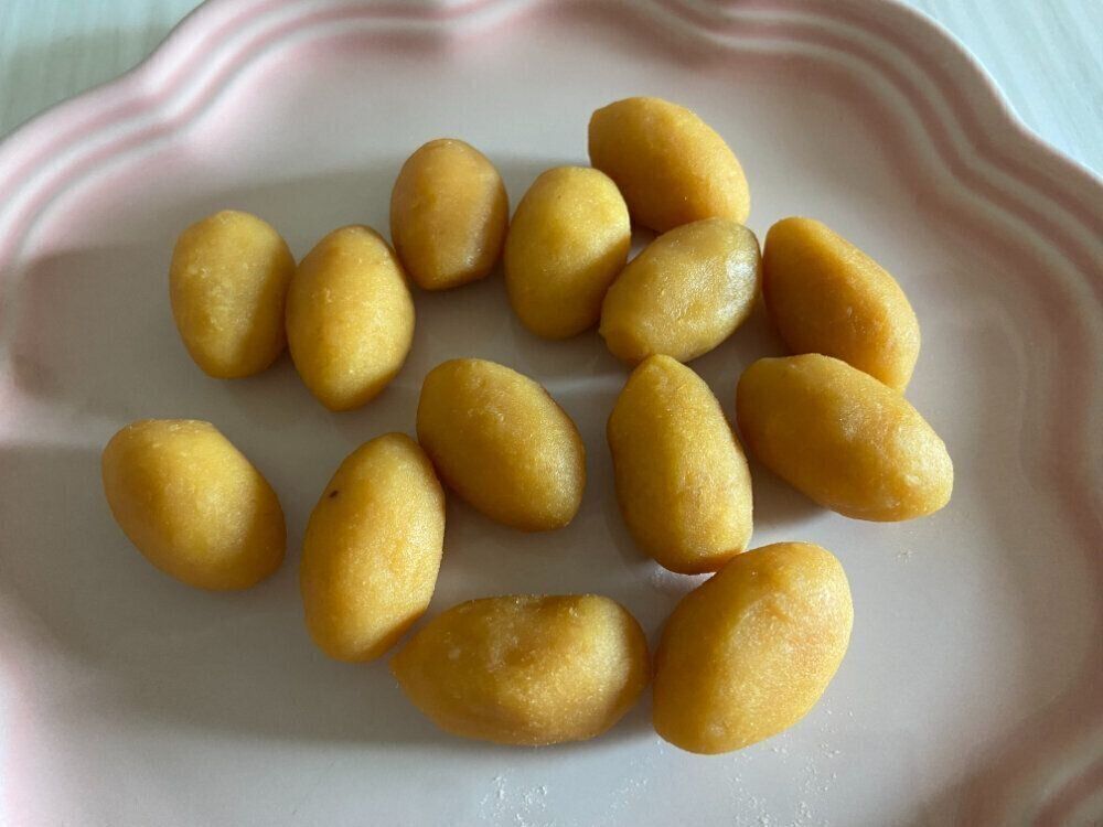一般的なスイートポテトよりも小さい、一口サイズのコロンとしたミニスイートポテトです。原材料はさつまいもと砂糖のみ!