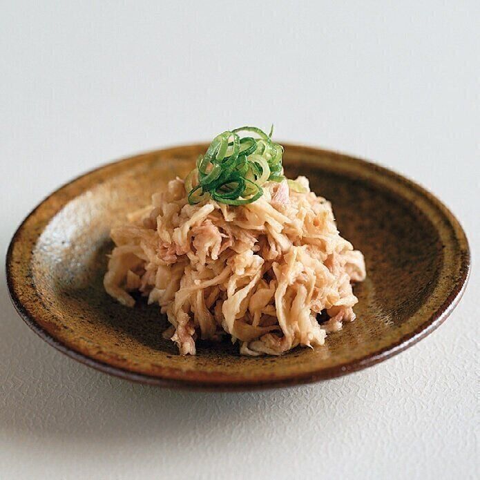 水でもどしてキッチンばさみでカットした切り干し大根に、汁ごとのツナ缶、ポン酢しょうゆを混ぜる。