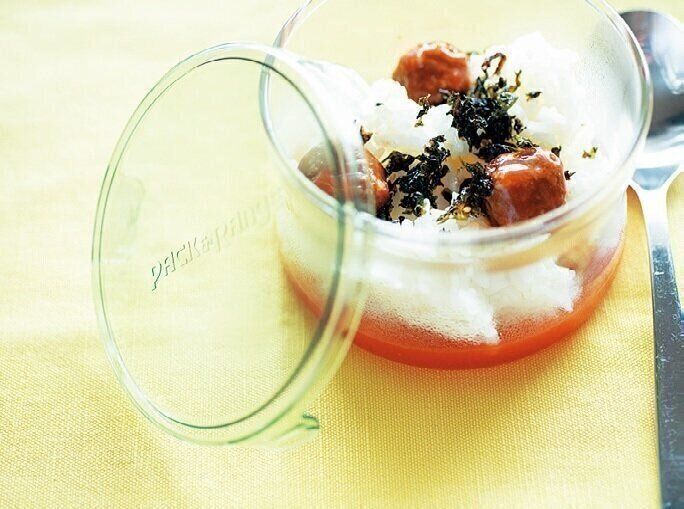 「仕事中に片手で食べられるから」と夫におにぎりをリクエストされて以来、夫のお昼は毎日、大きなおにぎり2個。ミートボールやウインナーなどの具をつまようじでのせ、ラップで包めば洗い物もゼロ。