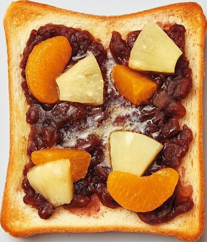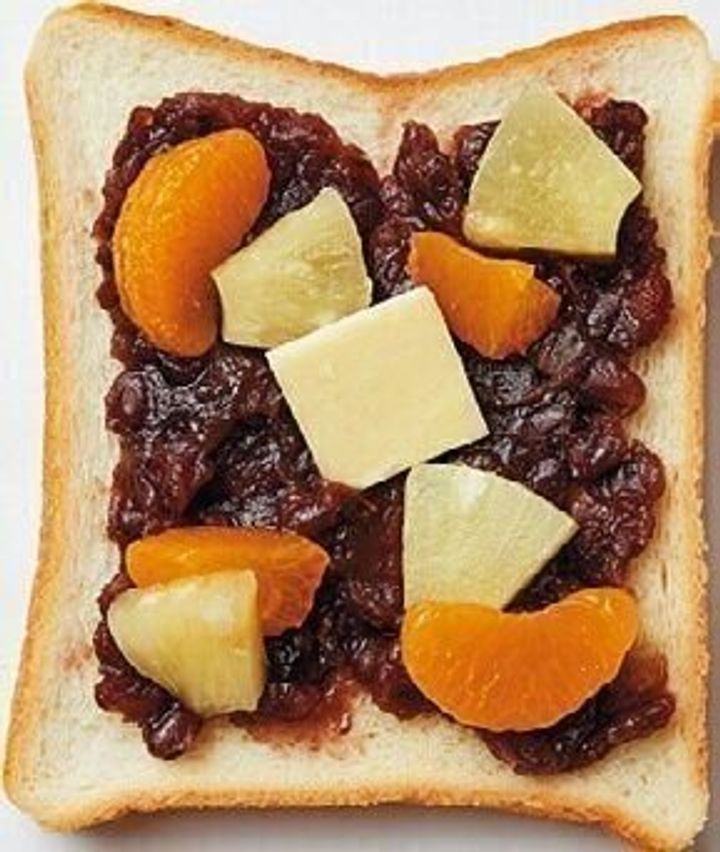 あんこをパンに塗り、フルーツを並べ、バターを中央にのせる。