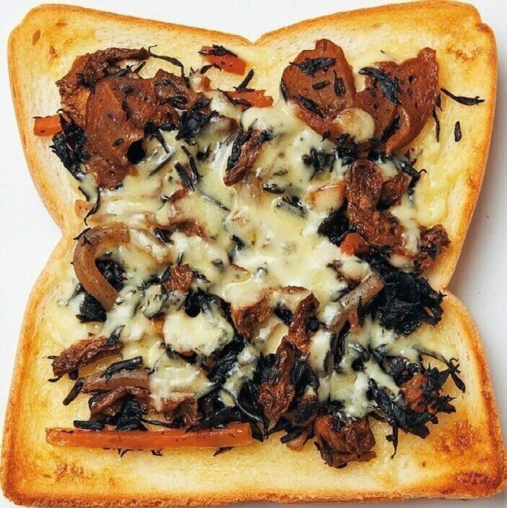 マヨネーズをパンに塗り、ひじきの煮もの、チーズの順にのせる。