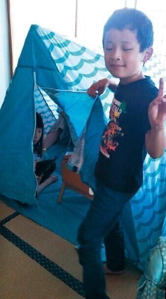 リビングにいる子どもをテントに移動させて、その間に家事をするとサクサク進んでイライラが半減。夏休み中ずっと設置してます。(サンキュ!STYLEライター しばたまゆさん)