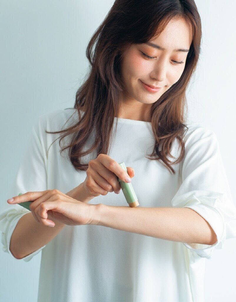 《UVと虫よけ同時にできるアイテムが楽!》これ一本で、日焼け止め、下地、虫よけの3役。ファンデを塗らずにそのまま出かけられます。スティックタイプでどこでも塗れて、手もべたつかない!(内舘綾子さん 東京都 35歳)