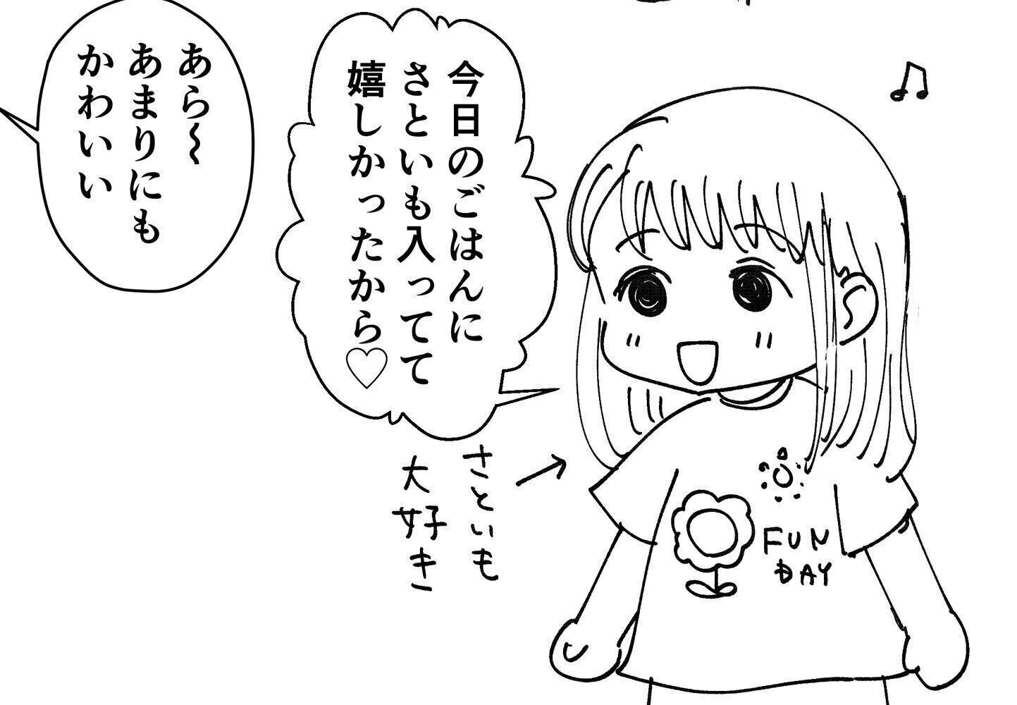 すると娘さんは「今日のごはんにさといもが入っていてうれしかったから(ハート)」とのこと。娘さんはさといもが大好きなんだそう。
