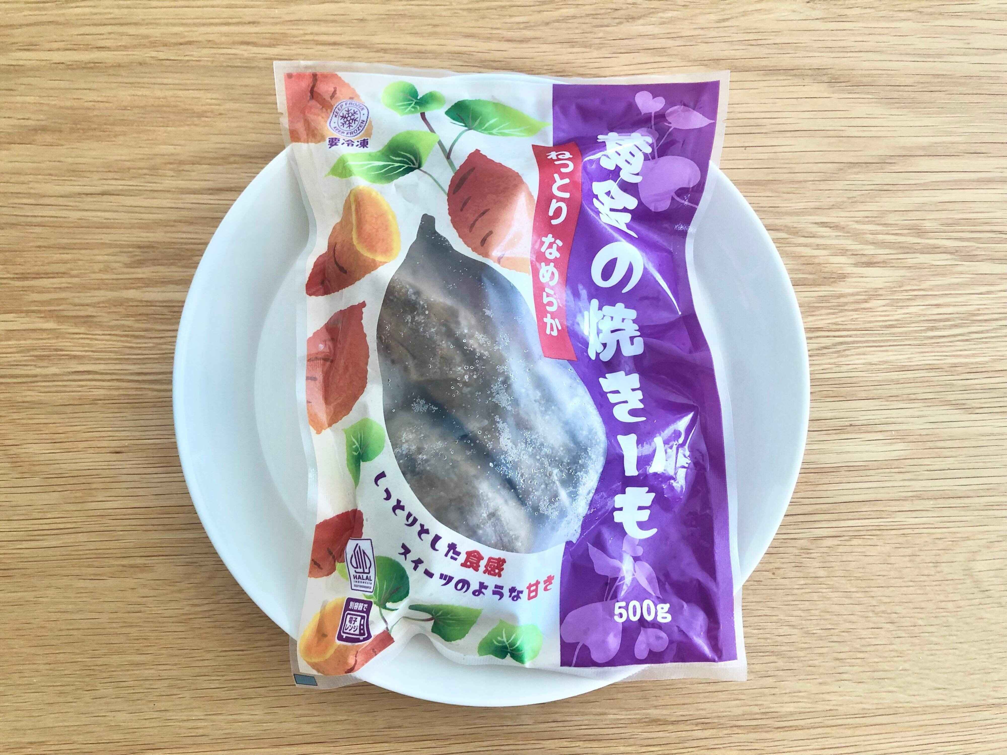 凍ったままの焼きいもをラップをかけずに耐熱皿に乗せ、小さいもの(125g~200g)だと500Wで約3~4分温めたら食べられます。大きさによって加熱時間が変わりますので、パッケージをよく読んでから温めて下さいね。