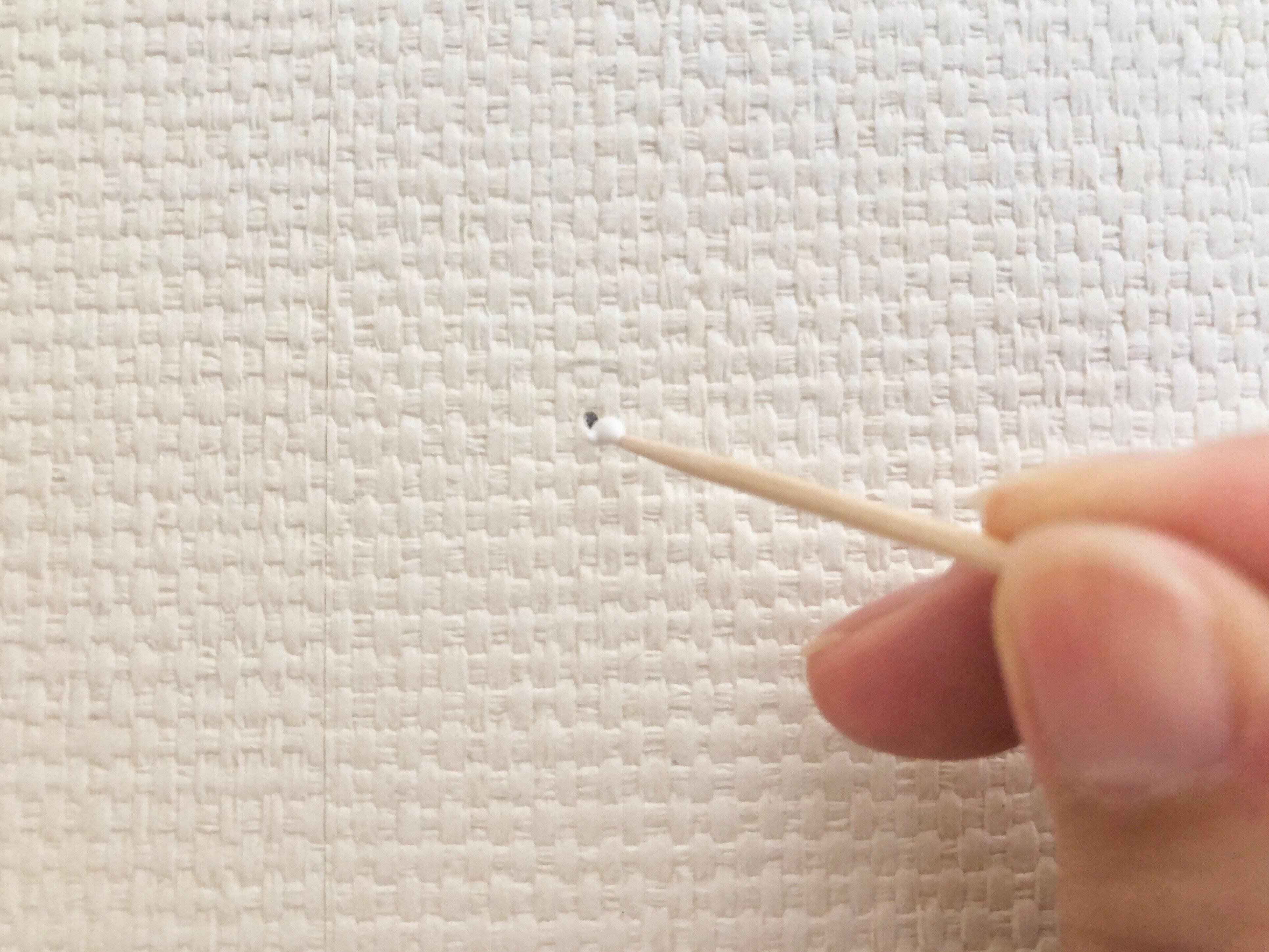 最初に、補習箇所のゴミや水分などを取り除き、本品を注入していきます。チューブなので直接注入してもいいですが、今回は穴が小さめだったので爪楊枝で穴を埋めていきました。