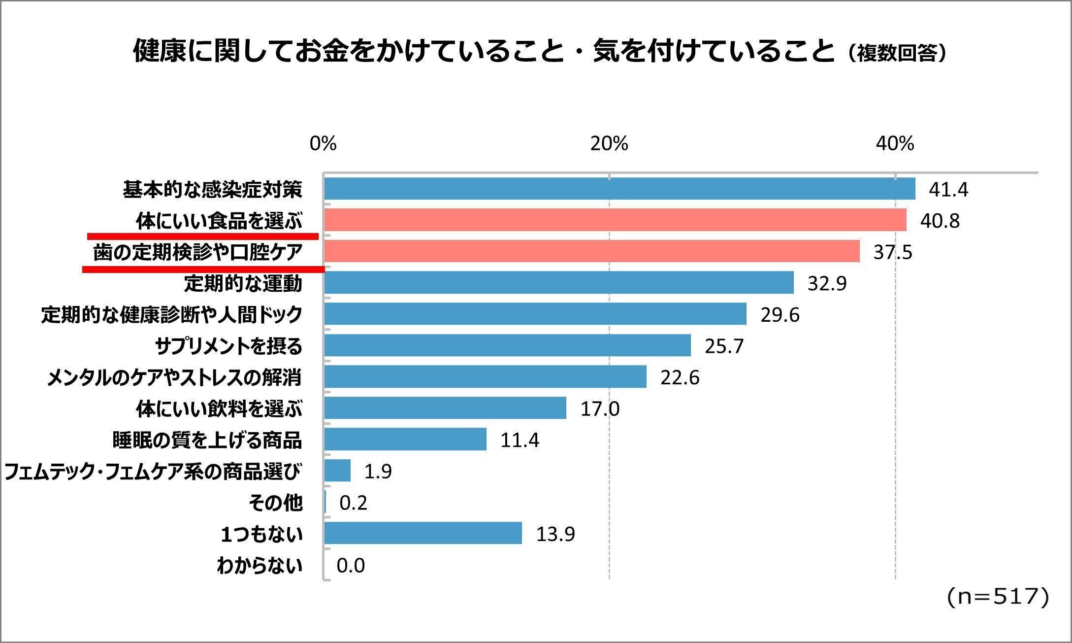 3位の「口腔ケア」は、先々にお金がかかることへの予防意識に加えて、ノーマスク生活が定着したことも一因のようです。
