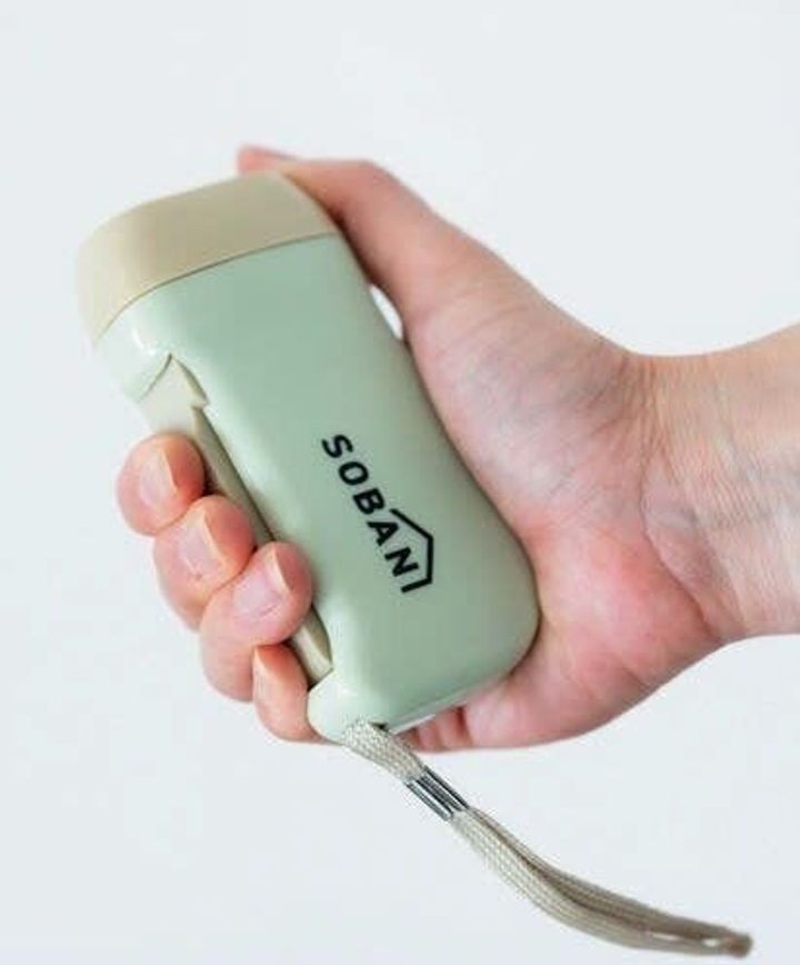 充電不要で、レバーを繰り返し握ることで簡単に発電。コンパクトでストラップ付きなので、夜のお出かけにも。