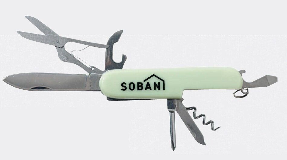 ナイフ、はさみ、プラス・マイナスドライバー、栓抜き、ワインオープナー、缶切り、爪やすりがひとつに。